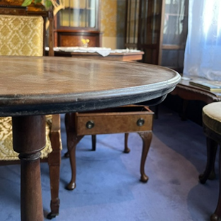 ⇒イギリスの老舗塗料メーカー『マイランズ社』製シェラックニスを用います。古くからアンティーク家具に限らず、バイオリンやギター木部にも使用されている塗料です。