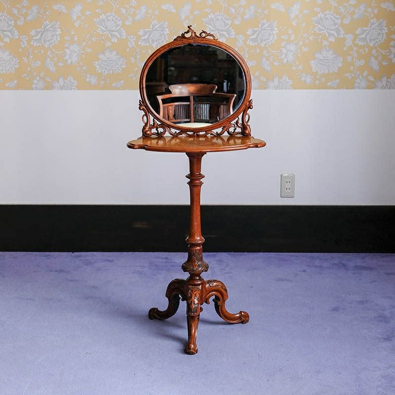 イギリス・英国アンティーク家具、ウォルナット製ピアスドカーブミラードレッシングスタンドです。