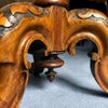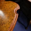 天板を飾るシンメトリーに張り合わせられたウォルナット杢目と精巧なインレイ(象嵌細工)。