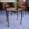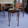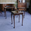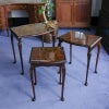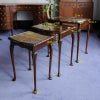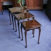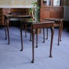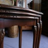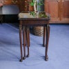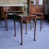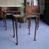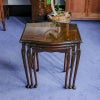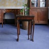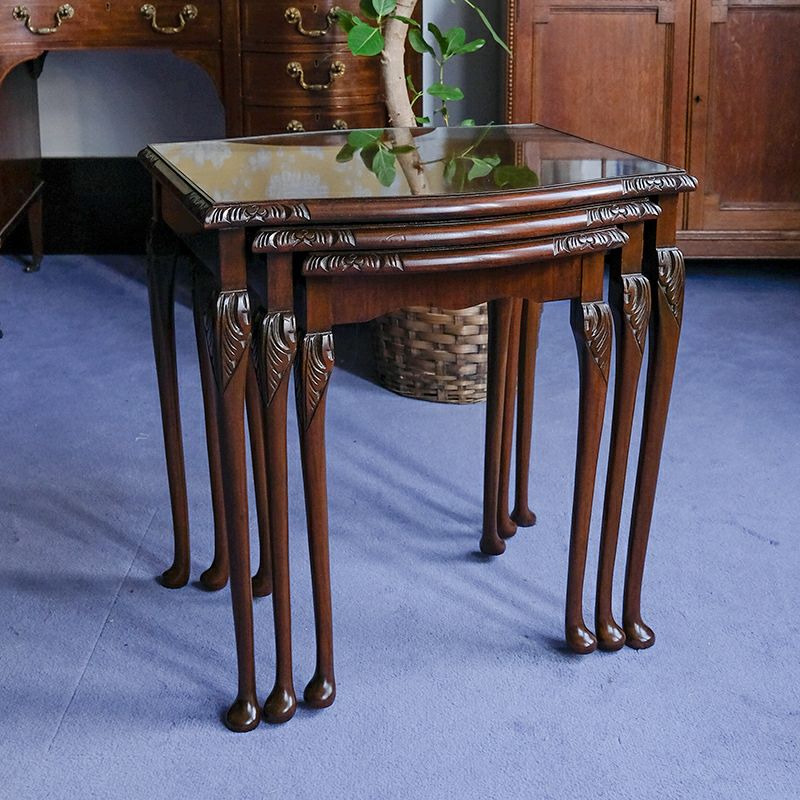 イギリス・英国アンティーク家具、ウォルナット製ボウフロントガラストップ3段ネストテーブルです。