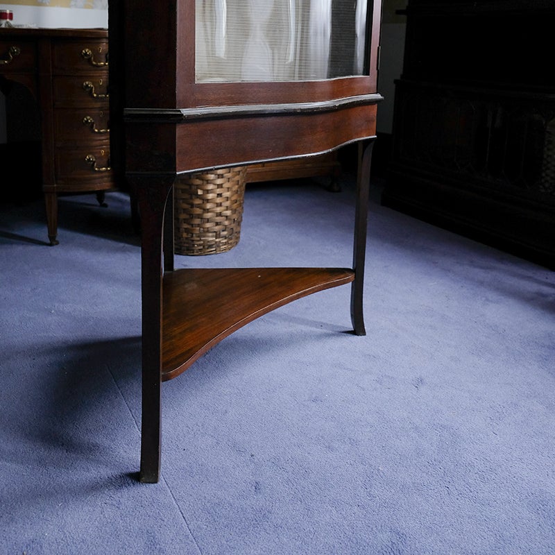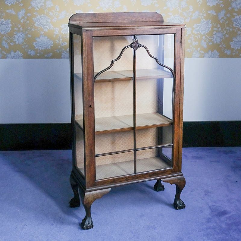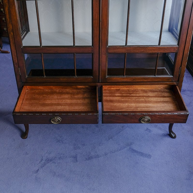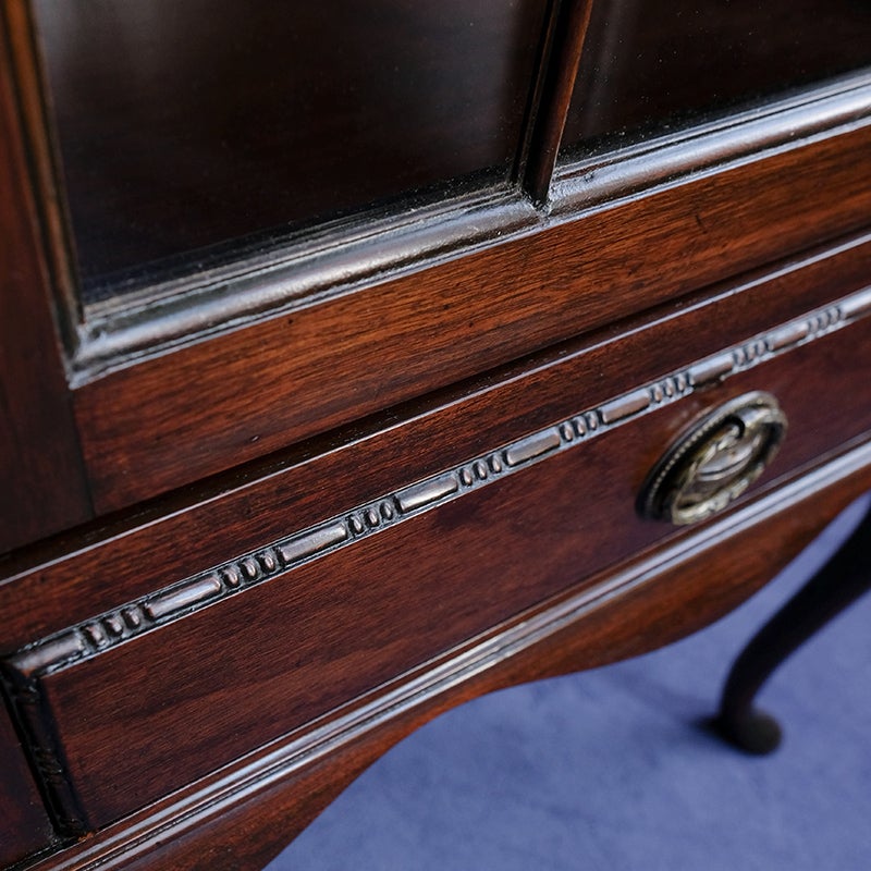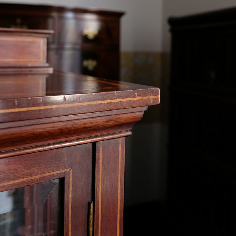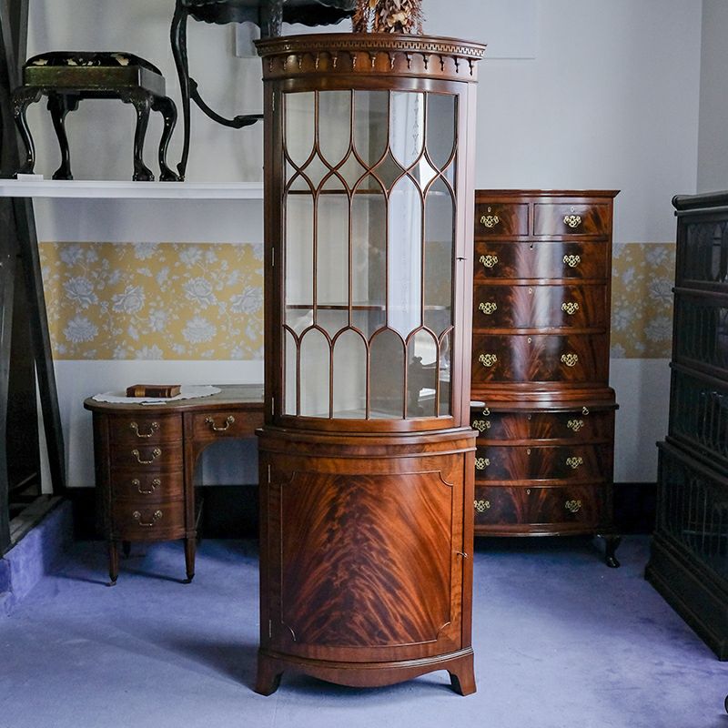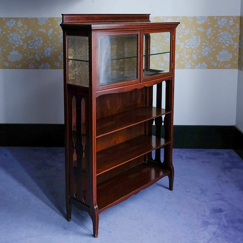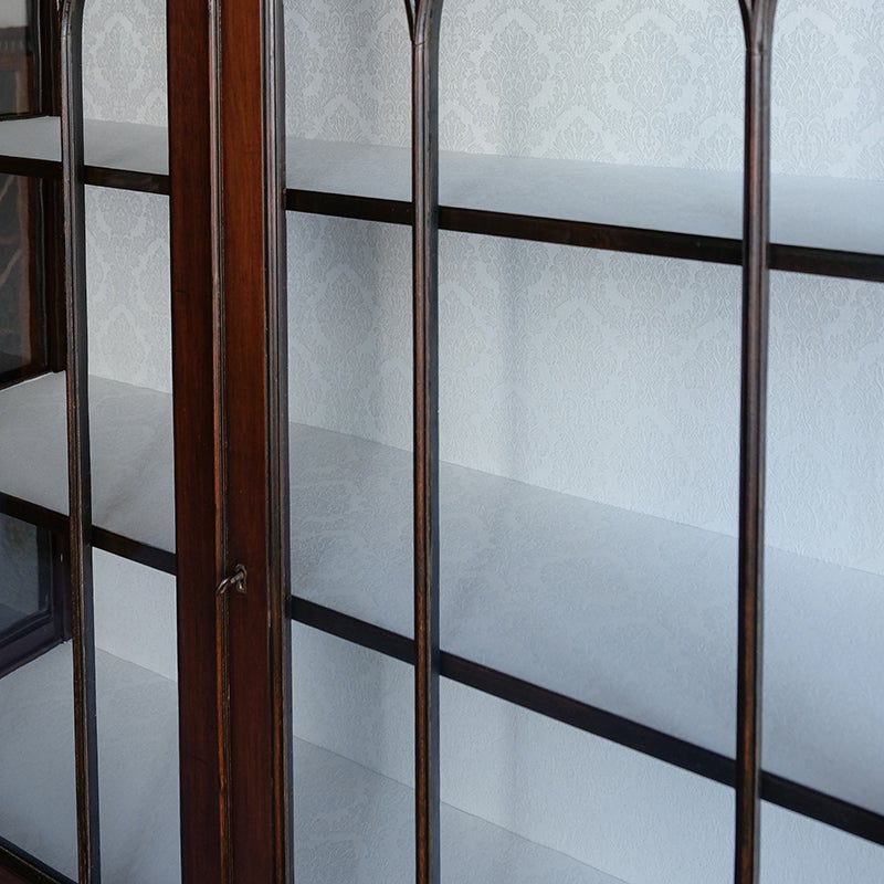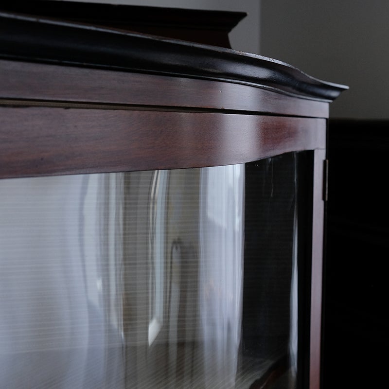 「キャビネット」は、カップボード、キッチンボード、ダイニングボード、サイドボード等の食器類を収納する家具やブックケースと異なり、コレクションを飾ることを目的とした構造からアンティークガラスが三面を飾ります。
