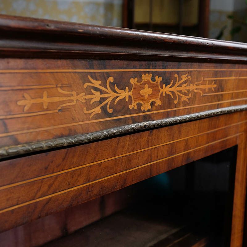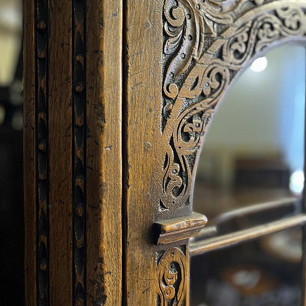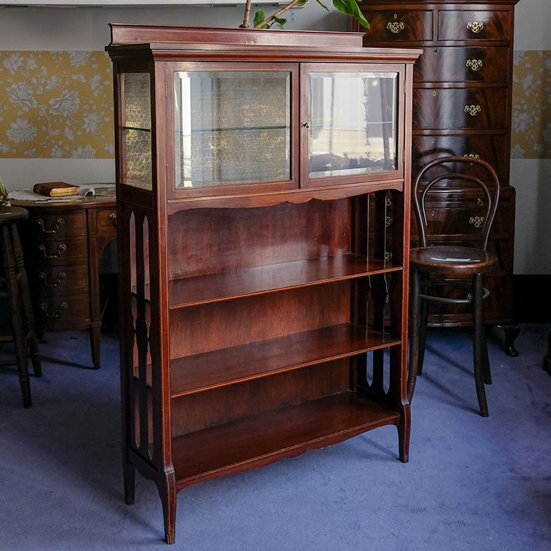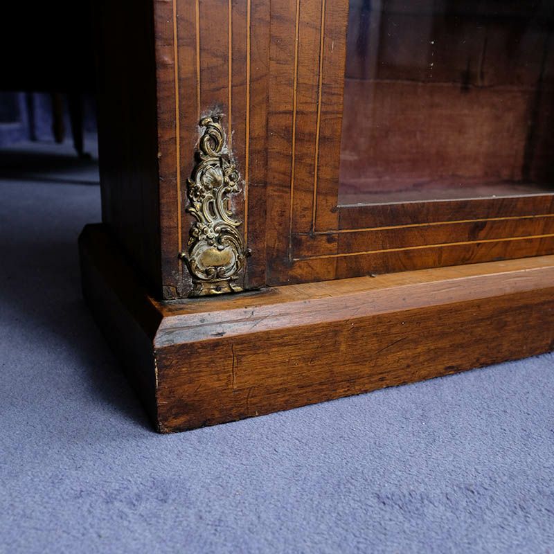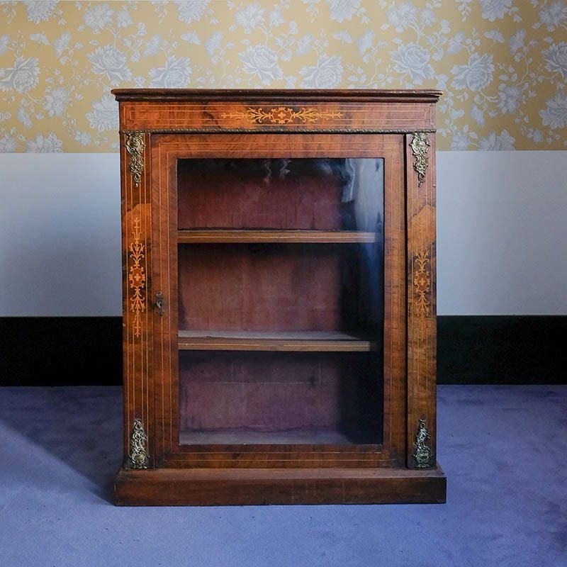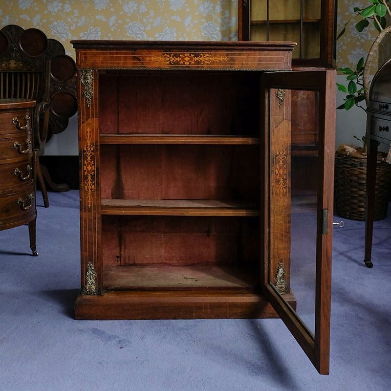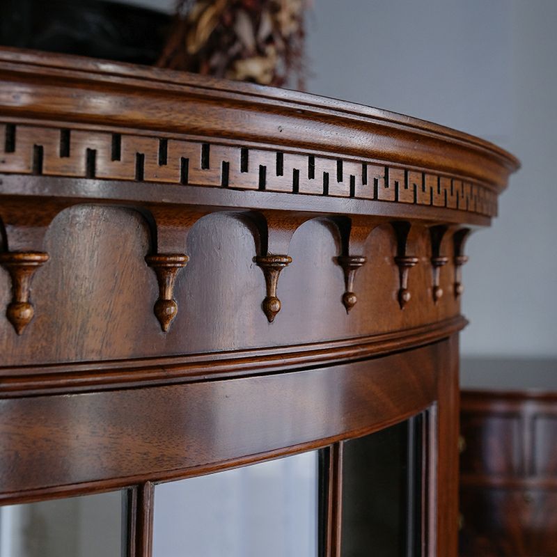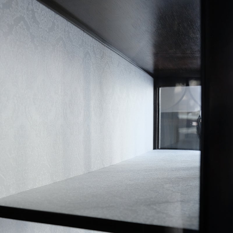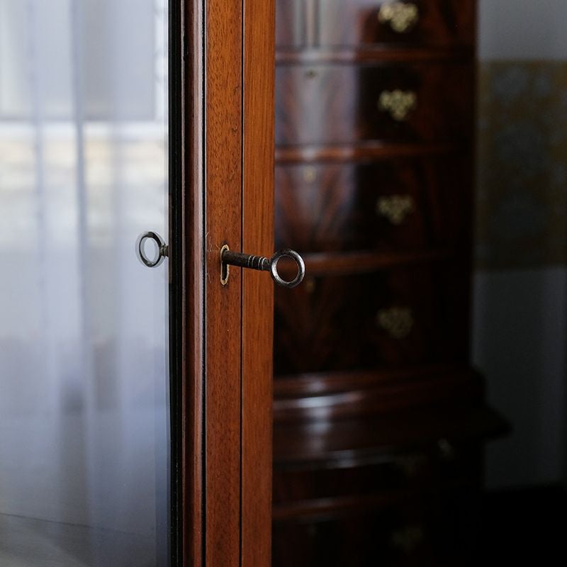「キャビネット」は、カップボード、キッチンボード、ダイニングボード、サイドボード等の食器類を収納する家具やブックケースと異なり、コレクションを飾ることを目的とした構造からアンティークガラスが三面を飾ります。