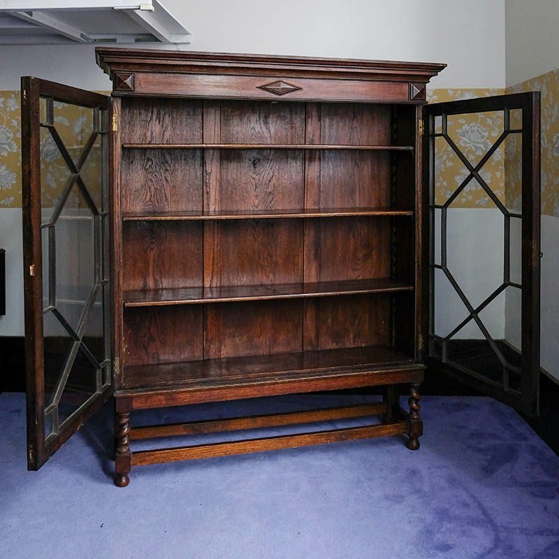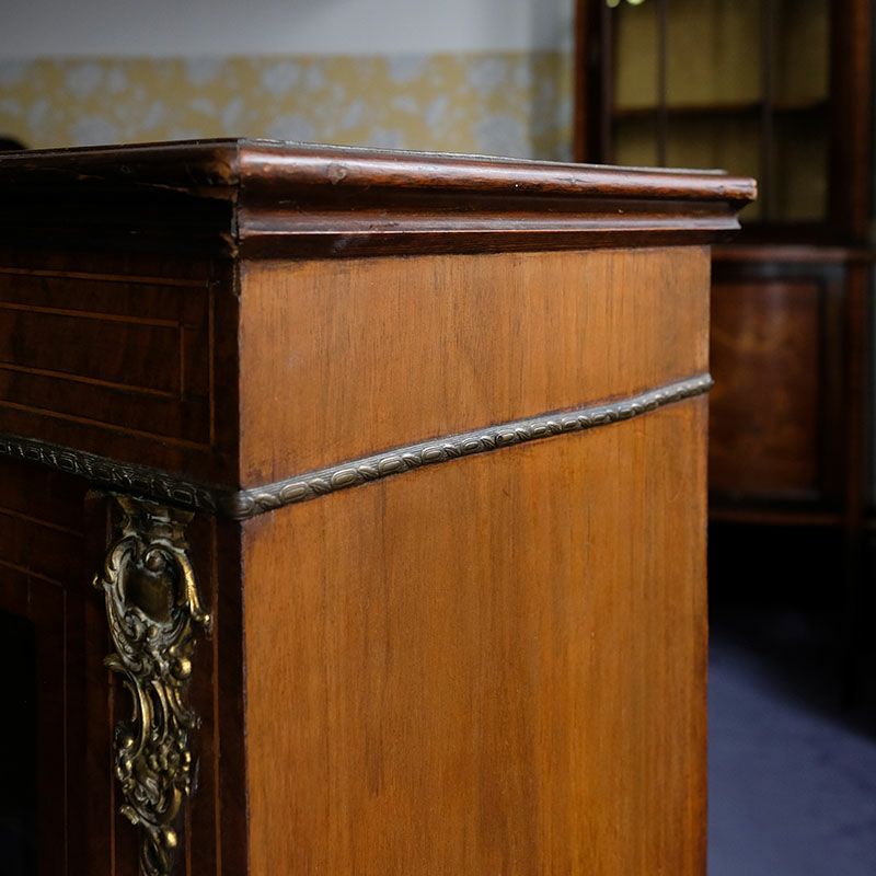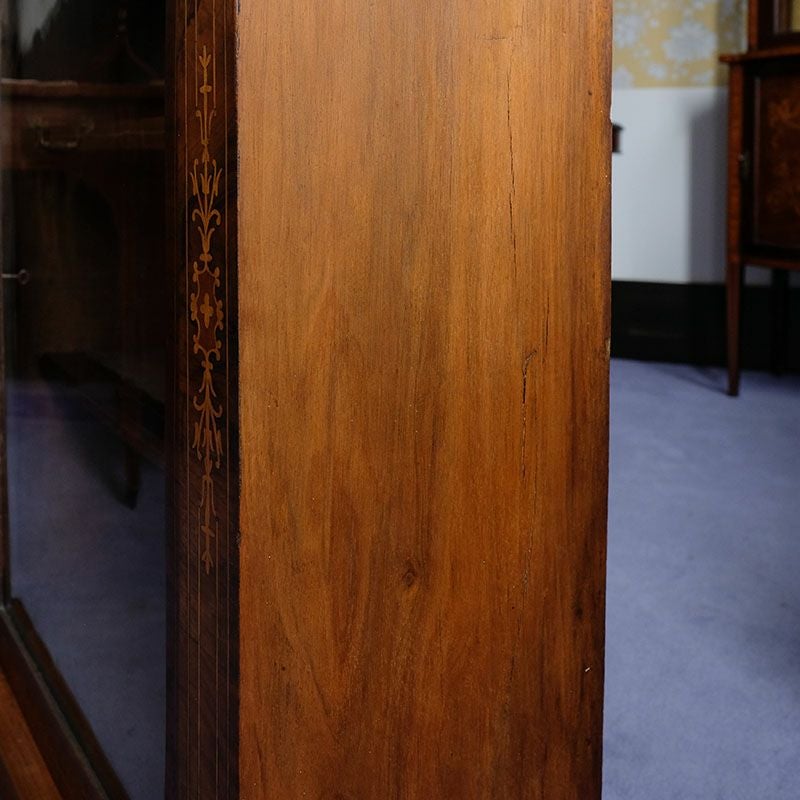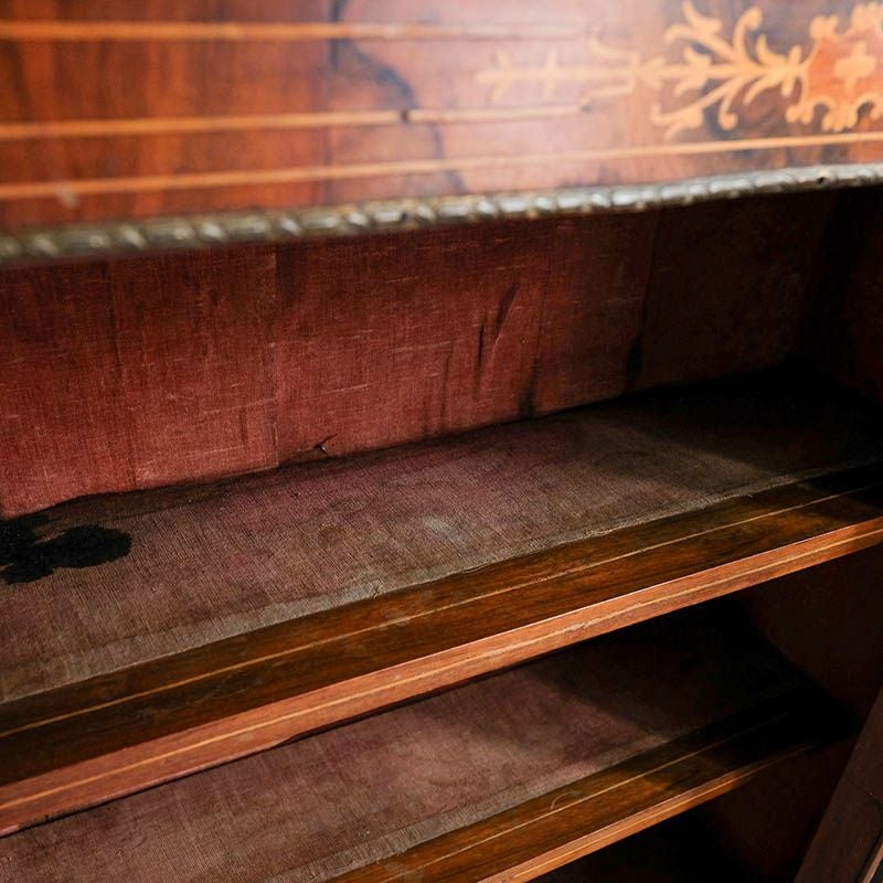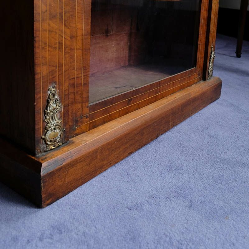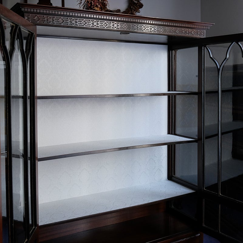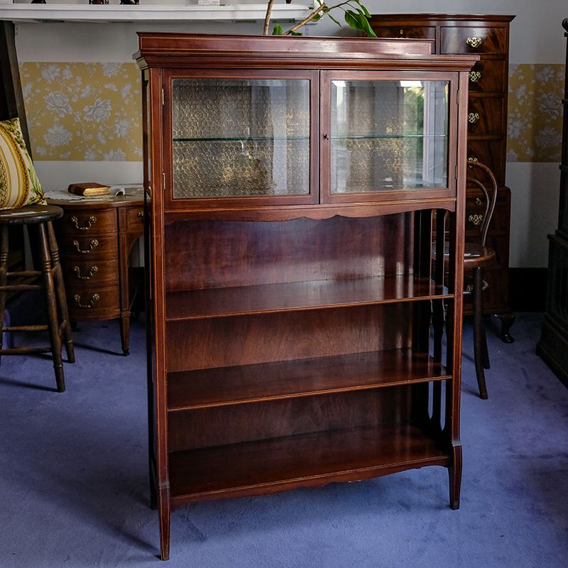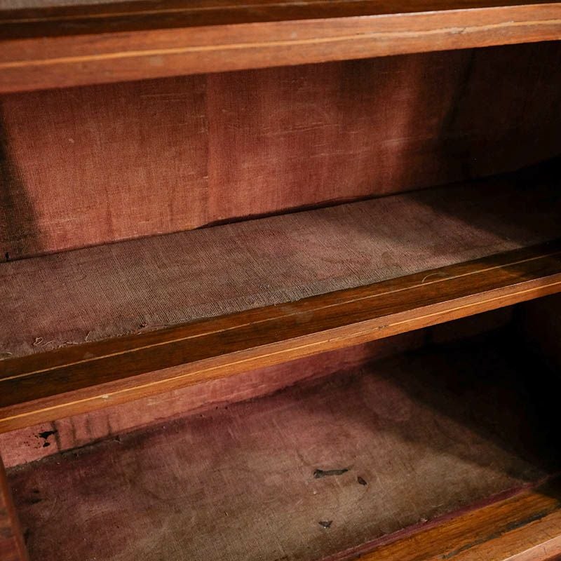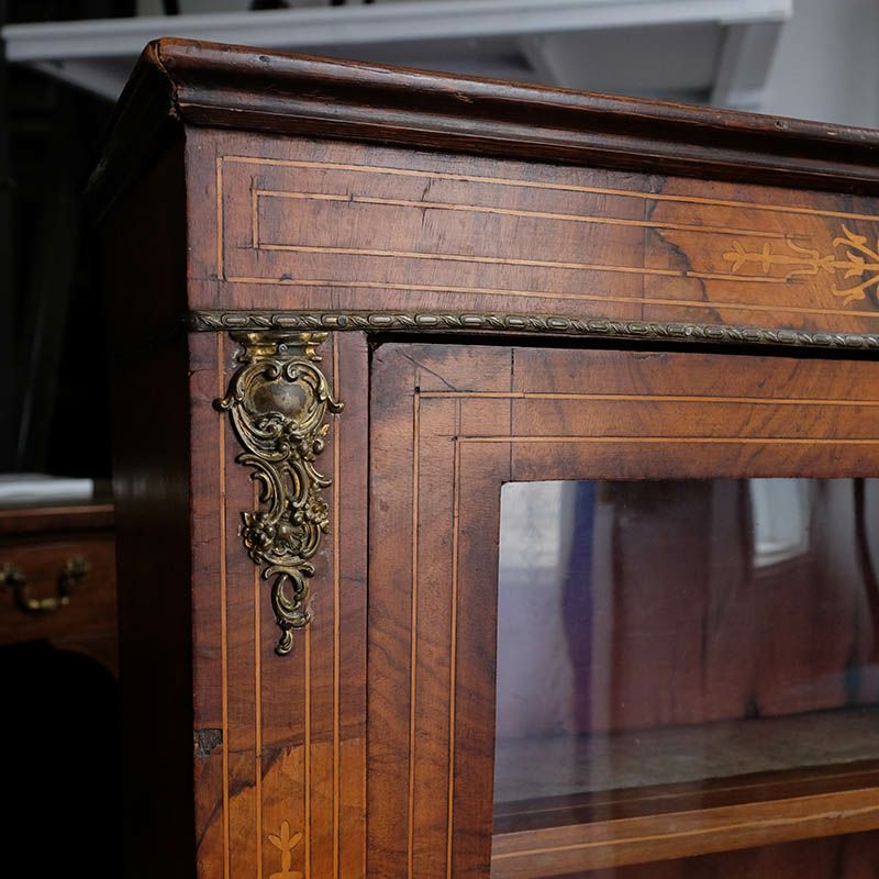 「キャビネット」は、カップボード、キッチンボード、ダイニングボード、サイドボード等の食器類を収納する家具やブックケースと異なり、コレクションを飾ることを目的とした構造からアンティークガラスが三面を飾ります。