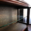 銘木マホガニーフレームにはめ込まれた美しいビベルド(面取)ガラス。