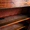 イギリス・英国アンティーク家具、ウォルナット製ブラスオルモルインレイピアキャビネットです。