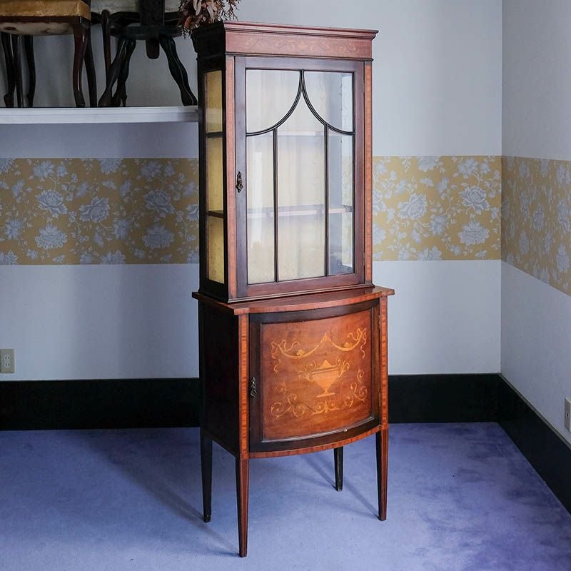 イギリス・英国アンティーク家具、マホガニー製リボンスワッグ&アルンマーケットリーキャビネットです。
