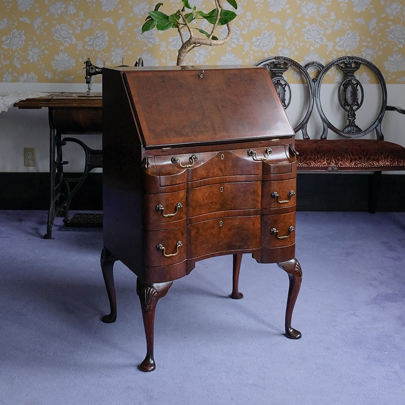 イギリス・英国アンティーク家具、ウォルナット製クィーンアン様式ライティングビューローデスクです。