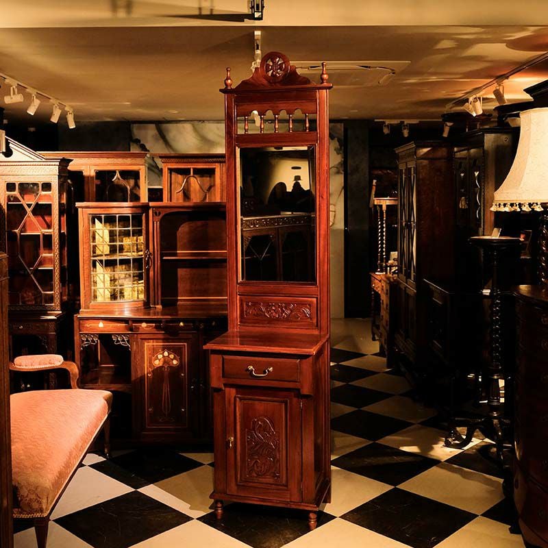 イギリス・英国アンティーク家具「マホガニー製ミラーバックホールスタンド/カップボード」です。
