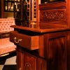 ⇒研磨などの様々な修復を施した際にもアンティークらしさが際立つ仕上がり、実用的な塗膜強度を目指し、シェラックニスと親和性の高いウレタン樹脂塗料を用いての重塗塗装を施しました。