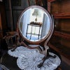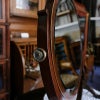 イギリス・英国アンティーク家具、マホガニー製ビベルドオーバルインレイテーブルミラーです。
