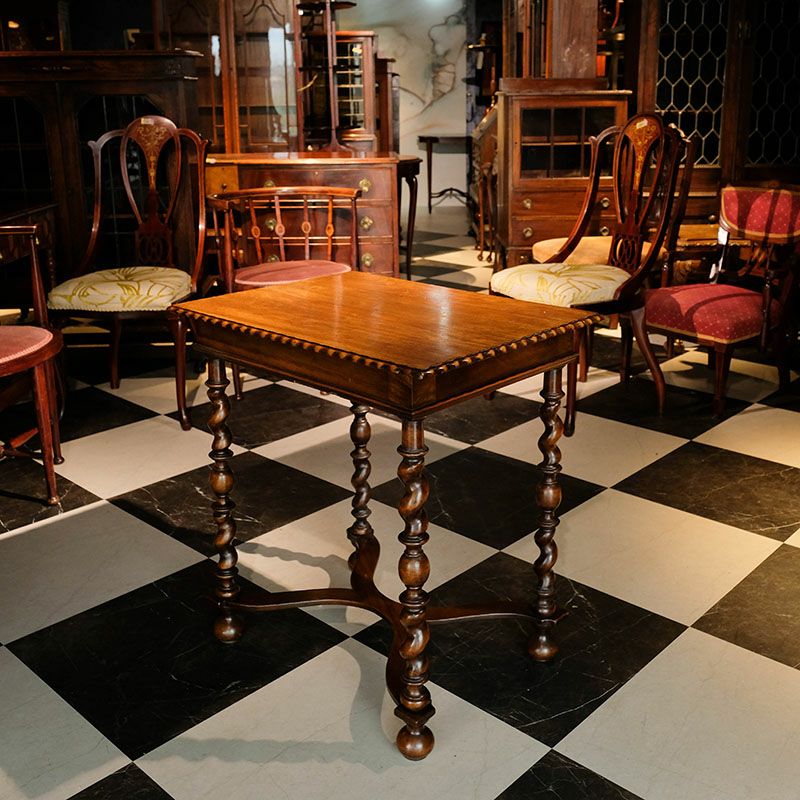 イギリス・英国アンティーク家具「ウォールナット製バリーシュガーツイストエックスストレッチャーテーブル」です。