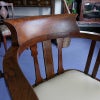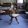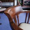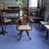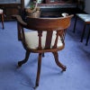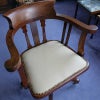 イギリス・英国アンティーク家具、オーク製クロスバンディングスウィーベルオフィスチェア/ホワイトレザーです。
