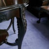 ⇒研磨などの様々な修復を施した際にもアンティークらしさが際立つ仕上がり、実用的な塗膜強度を目指し、シェラックニスと親和性の高いウレタン樹脂塗料を用いての重塗塗装を施しました。