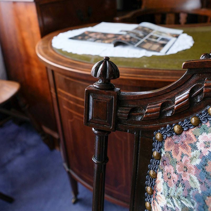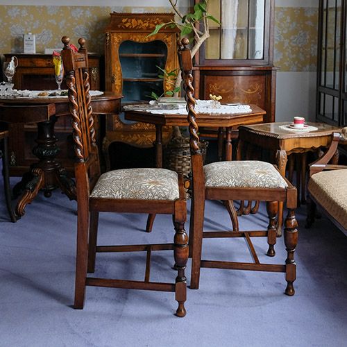 他の画像を見る 修復完了商品 U20-013-AB Set of 2 Leaf Carving Cabriolet Chairs『WilliamMorris/ Blackthorn』(2脚セット) ¥ 125,400 税込 カートに入れる お気に入りに登録する