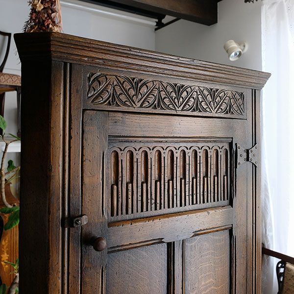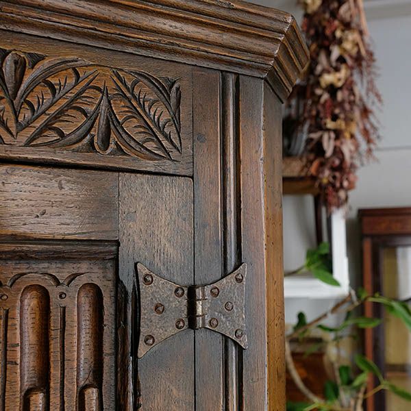 他の画像を見る 修復完了商品 U23-038 Tudor Style Leaf Carved Corner Cupboard with Quaint hinges ¥ 264,000 税込 カートに入れる お気に入りに登録する