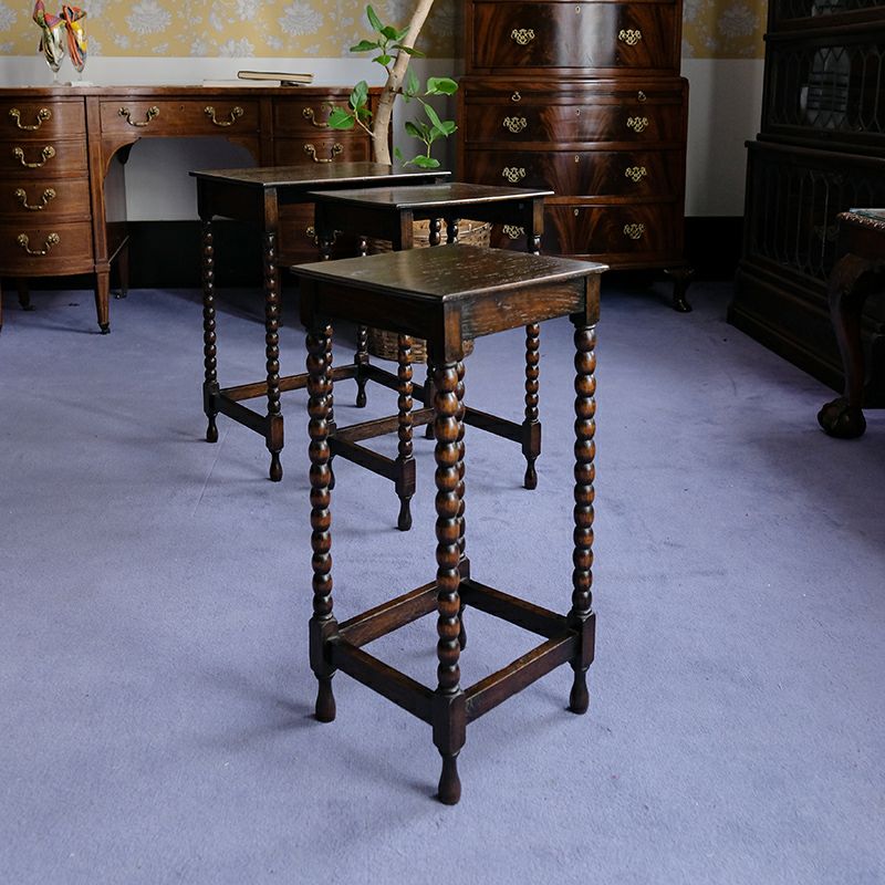 他の画像を見る 修復完了商品 U23-142 Jacobean Solid Oak Nest of 3 Tables with Ball Turned Leg ¥ 99,000 税込 カートに入れる お気に入りに登録する