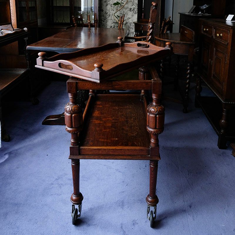 イギリス・英国アンティーク家具「オーク製バルボスレッグトローリーワゴン」です。