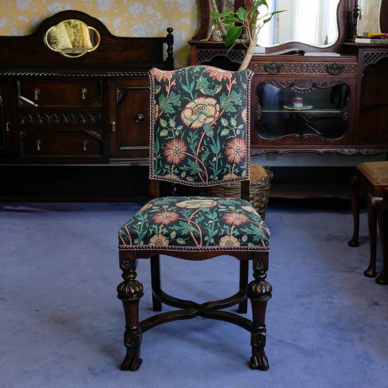 イギリス・英国アンティーク家具、オーク製バロックスパニッシュフットチェア『Pink&Rose /ウィリアム・モリス』です。