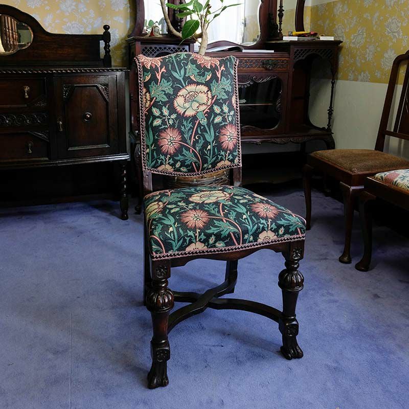 イギリス・英国アンティーク家具、オーク製ホールチェア『Pink&Rose /ウィリアム・モリス』です。