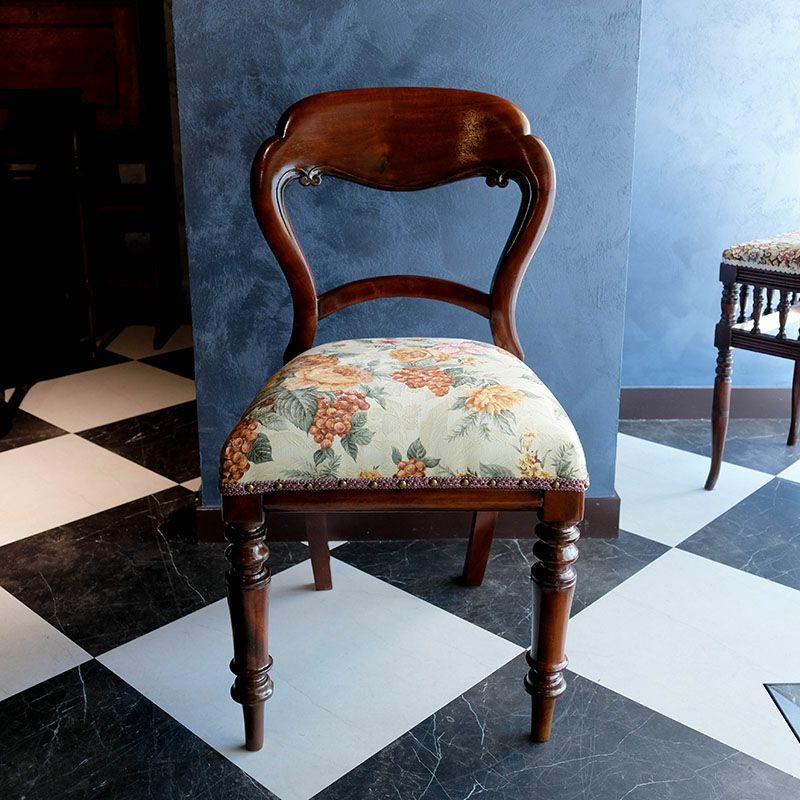 塗装は、こちらのチェア製作時に使用されていたであろうシェラックニスを用いるフレンチポリッシュ(アンティーク塗装)にて仕上げております。