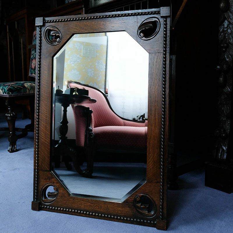 イギリス・英国アンティーク家具「オーク製ビベルドウォールミラー」です。