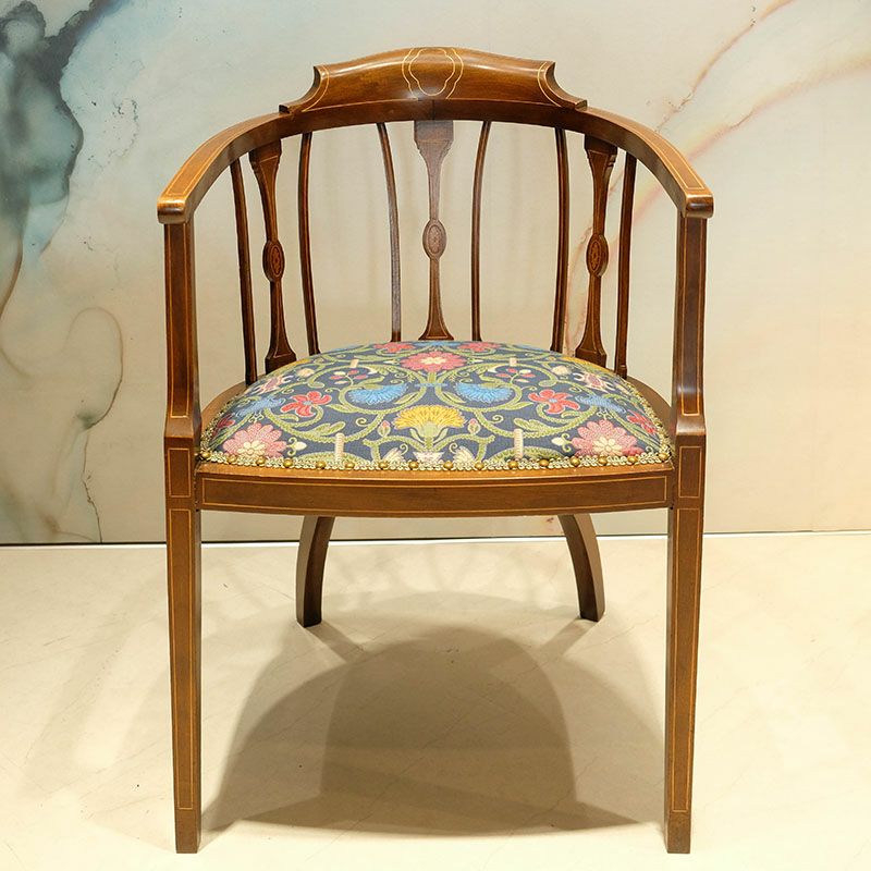 銘木の繊細なフレームに精緻な象嵌(インレイ)細工が美しいタブチェアです。