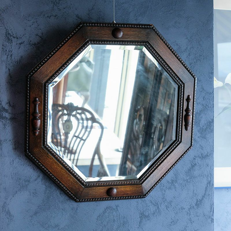 イギリス・英国アンティーク家具「オーク製ターンドピラーオクタゴナル壁掛けビベルドミラー」です。
