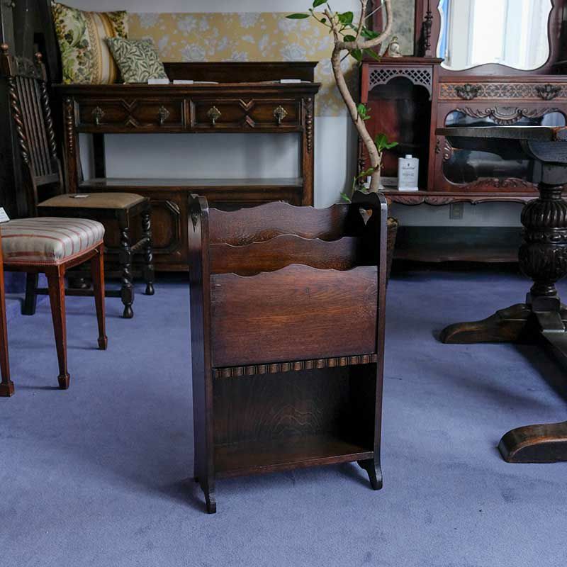 イギリス・英国アンティーク家具「オーク製ピアスドカーブマガジンラック」です。