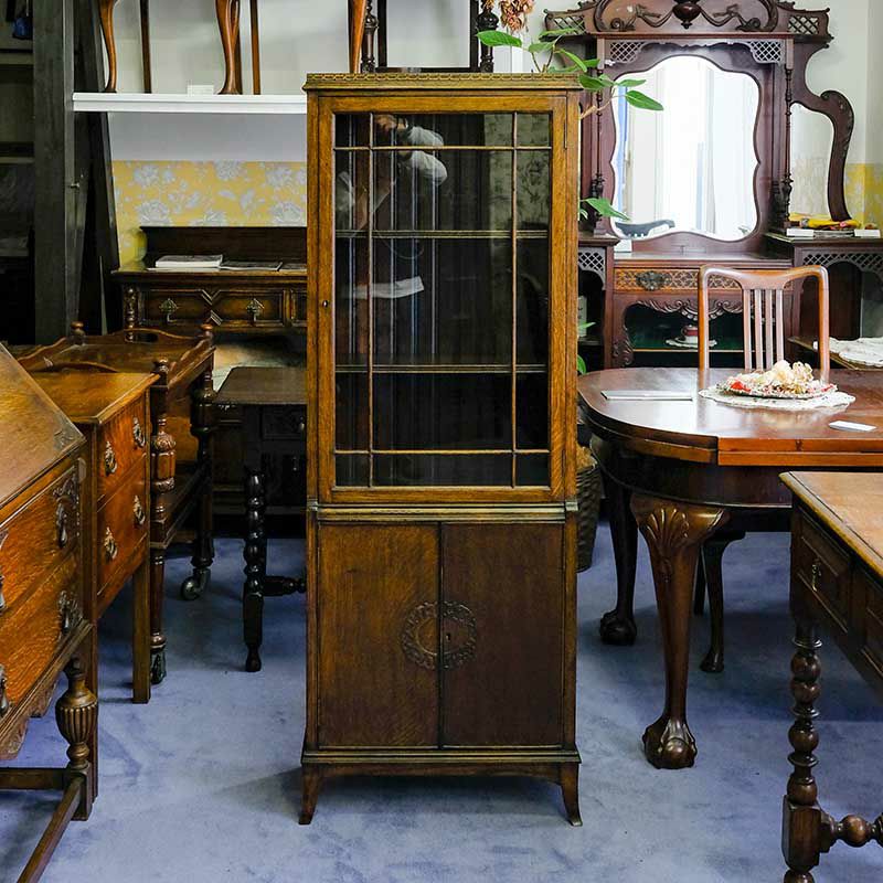 イギリス・英国アンティーク家具「オーク製ガラスブックケース/カップボード」です。