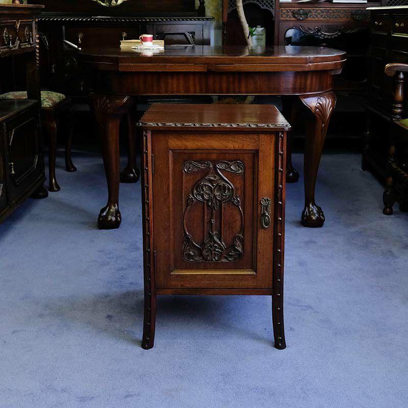 イギリス・英国アンティーク家具「マホガニー製スモールカーブドベッドサイドキャビネット/カップボード」です。
