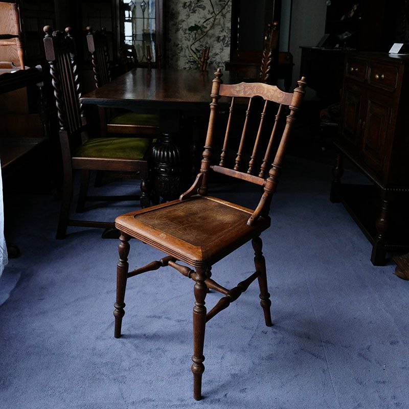 イギリス・英国アンティーク家具「エルム/ビーチ製オーネイトエンボススピンドルチェア」です。