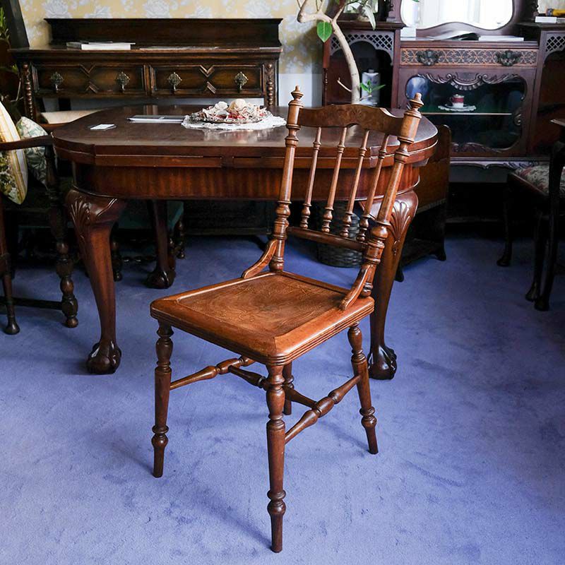 イギリス・英国アンティーク家具「エルム/ビーチ製オーネイトエンボススピンドルチェア」です。 座面やトップレールの美しいエンボス加工(型押し)。 バラスター意匠の精巧なスピンドルピラー。 座枠やストレッチャーに至るまでクラフトマンシップを感じさせられる一品です。 アンティークならではの美しさ、魅力を是非お楽しみください。