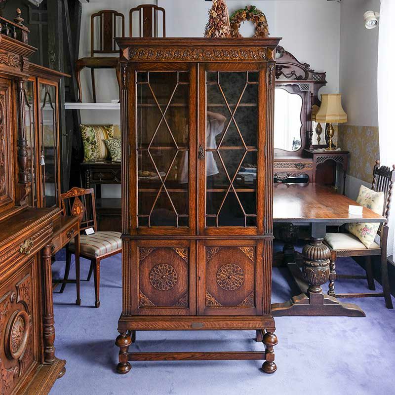 イギリス・英国アンティーク家具「オーク製オーネイトギロッシュブックケース/カップボード」です。