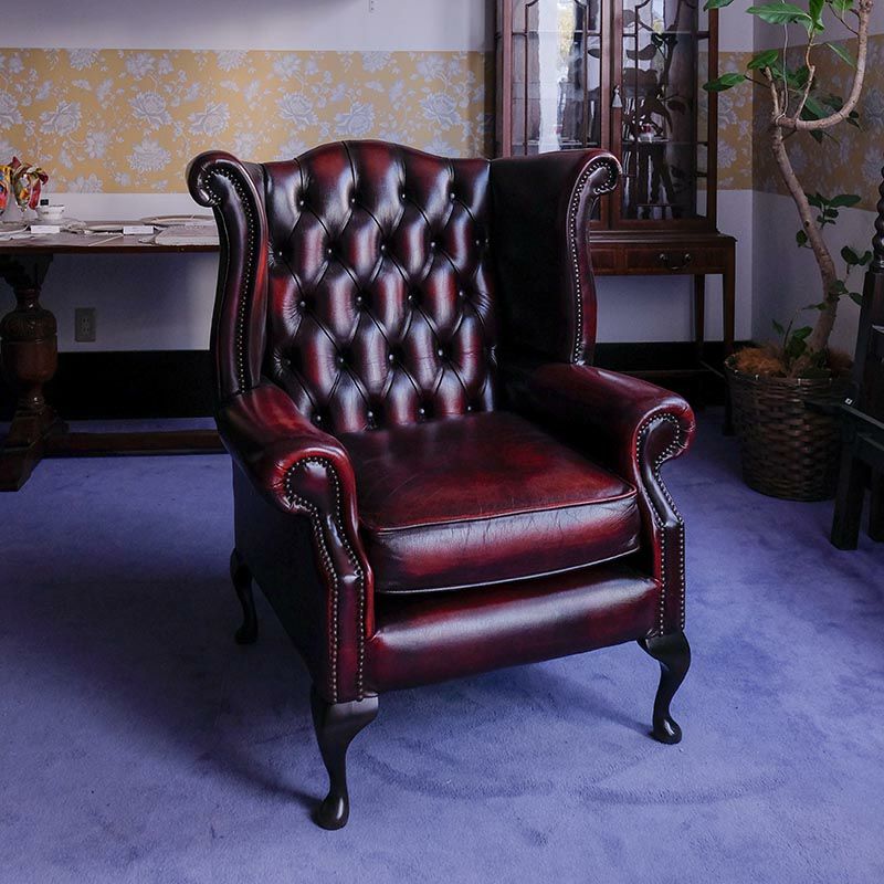 イギリス・英国ヴィンテージ家具、バーガンディーチェスターフィールドウイングバックソファです。