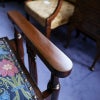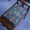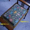 座面生地にはハプスブルグ皇帝家御用達ブランド「Backhausen」より、ルネサンス様式を想わせる色鮮やかな織色で蔓と花が描かれた一枚をセレクトしました。