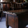 イギリス・英国アンティーク家具、オーク製インサイドストレージスツールです。 伝統的ビーズ意匠や幾何学模様のオーナメント。 趣のあるリングターンドレッグ。 重厚なキャストアイロンヒンジ。 ジャコビアンの様式美が古艶を帯びた味わい深いオークフレームに映える一品です。 アンティークならではの魅力を是非お楽しみください。