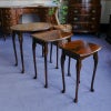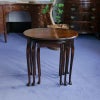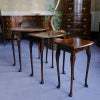 イギリス・英国アンティーク家具、マホガニー製クィーンアンスタイル3段オーバルネストテーブルです。