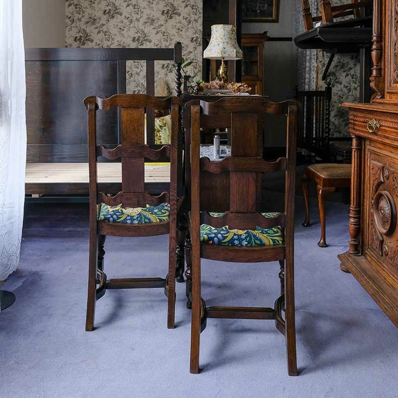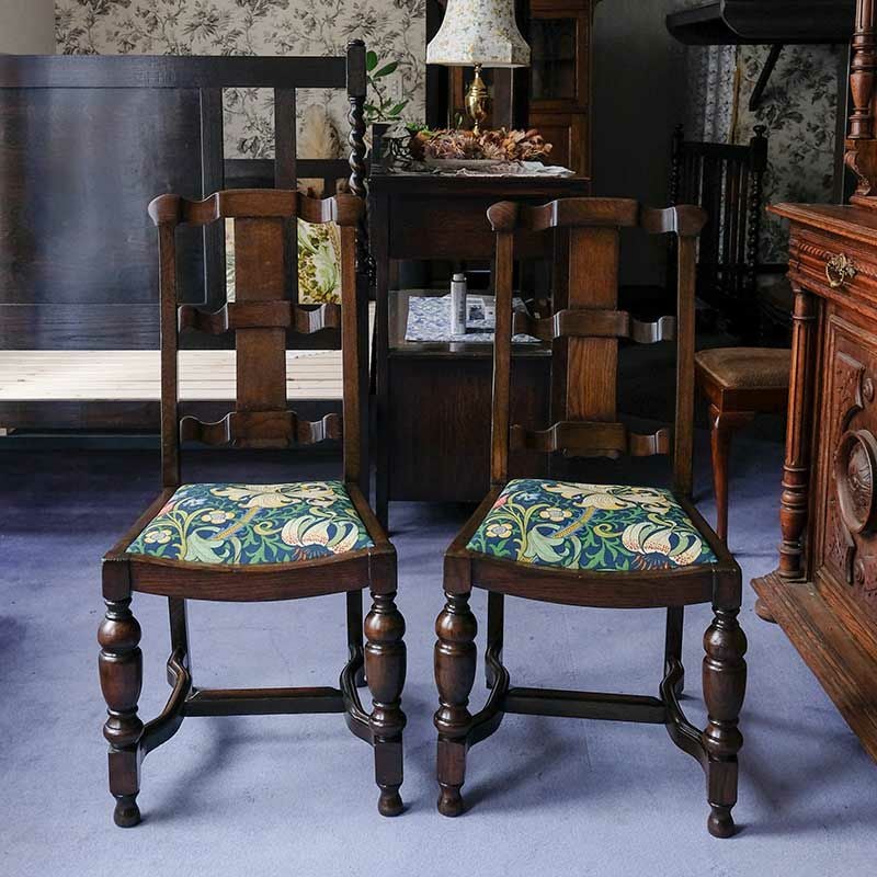 他の画像を見る 修復完了商品 U22-052-AB Set of 2 Bulbous Legged Ladderback Chair『WilliamMorris/GoldenLily』 (2脚セット) Price ¥ 0 ↓ ¥ 0 税込 SOLD OUT SOLD OUT 詳細を見る お気に入りに登録する