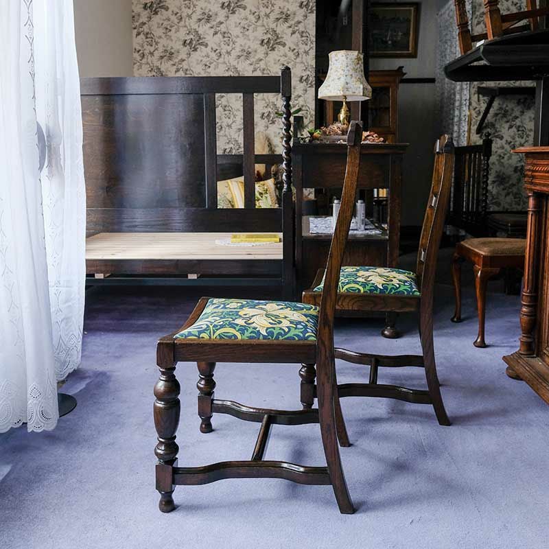 他の画像を見る 修復完了商品 U22-052-CD Set of 2 Bulbous Legged Ladderback Chair『WilliamMorris/GoldenLily』 (2脚セット) Price ¥ 0 ↓ ¥ 0 税込 SOLD OUT SOLD OUT 詳細を見る お気に入りに登録する