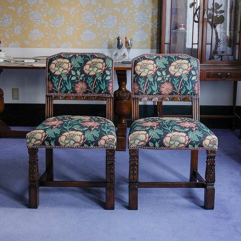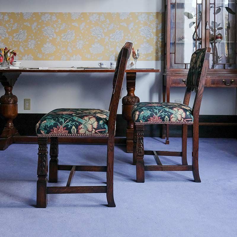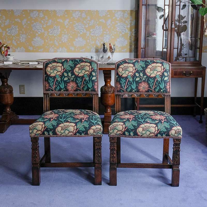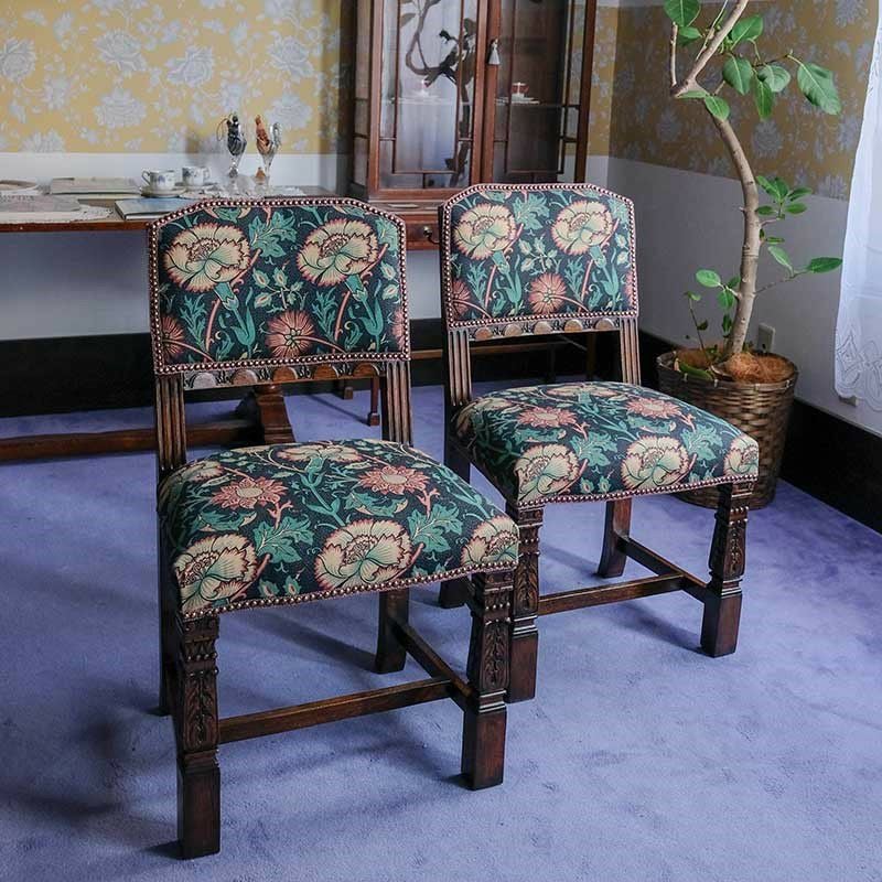 他の画像を見る 修復完了商品 U18-119-EF Set of 2 Ornately Acanthus Carved Pillar Dinning Chairs『William Morris/Pink&Rose』 (2脚セット) Price ¥ 0 ↓ ¥ 0 税込 SOLD OUT SOLD OUT 詳細を見る お気に入りに登録する