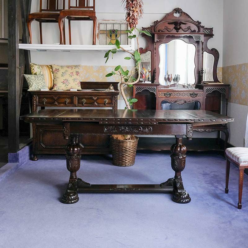 他の画像を見る 修復完了商品 U22-084 Ornately Gadroon Bulbous Legged Draw Leaf Dining Table Price ¥ 0 ↓ ¥ 0 税込 SOLD OUT SOLD OUT 詳細を見る お気に入りに登録する